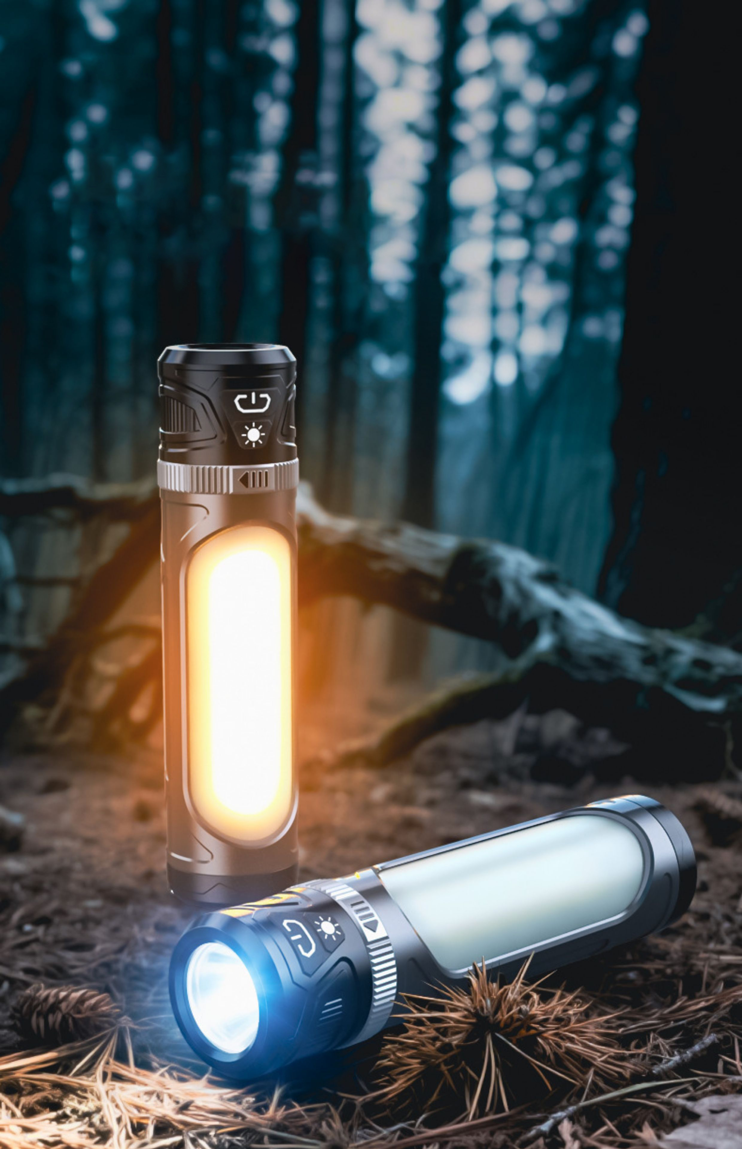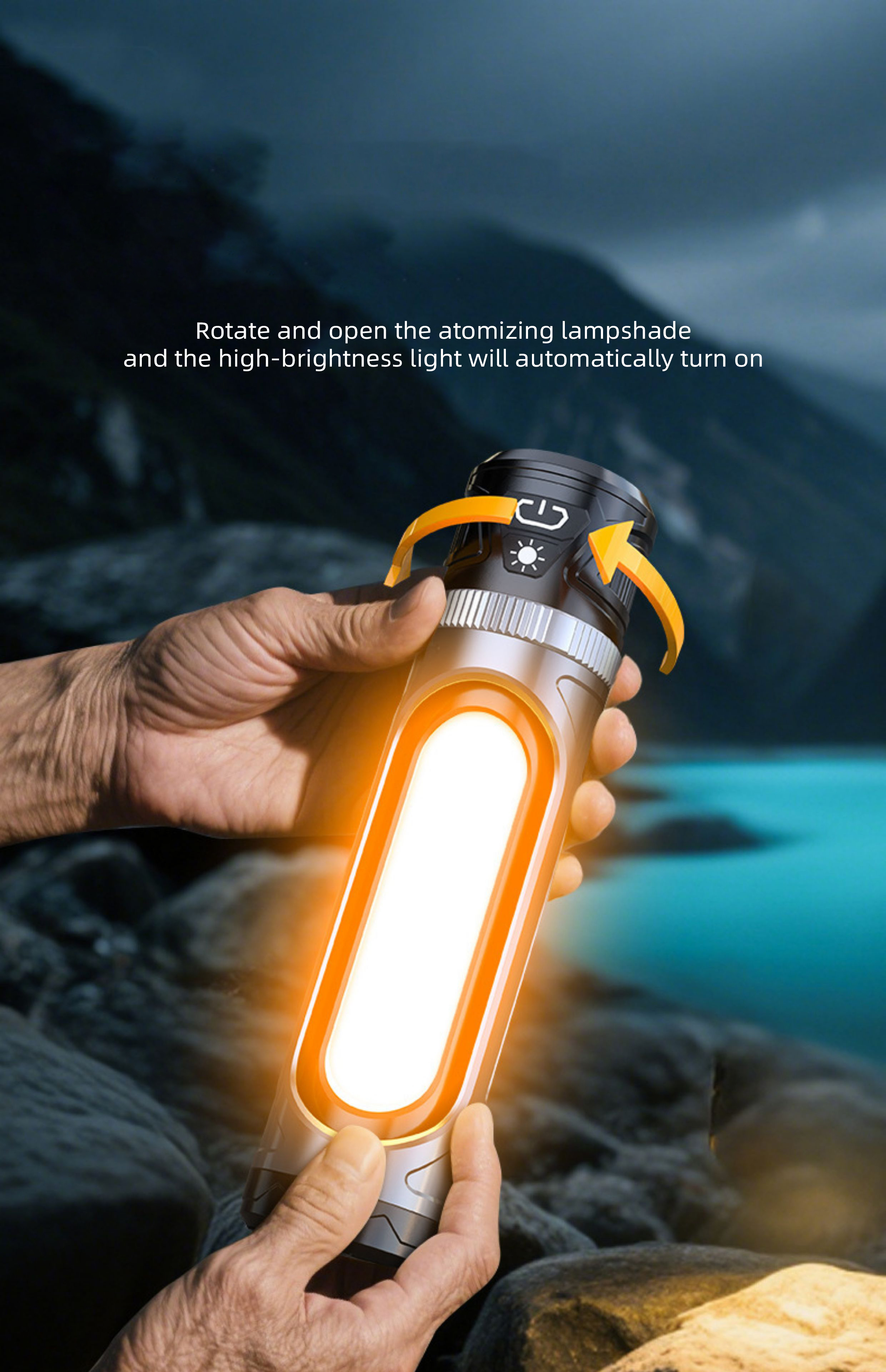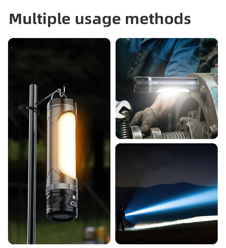 Function:LED 50%-LED 100%-LED Flash-LED OFF-White COB-Warm COB-White&Warm COB-Long press for dimming