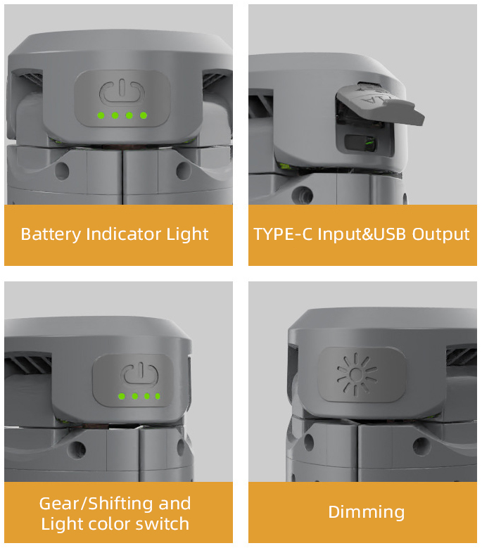 Function:White COB-Warm COB-Warm COB Beat-LED 100%-LED 50%-LED Flash -Long press for dimming -Double-Click RED SMD ON-RED SMD Flash